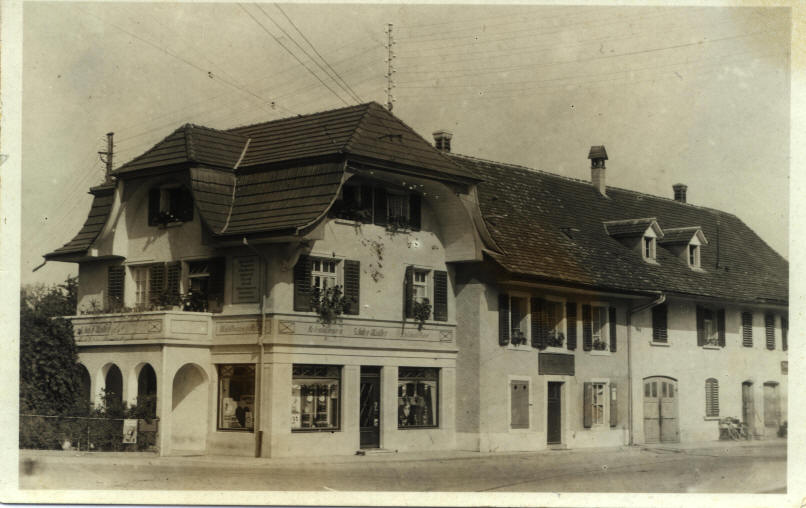 Das Haus Dorfstrasse 10/12 Seit dem 17. Jahrhundert war hier die Schmiede des Dorfes untergebracht. Verschiedene Quellen weisen daraufhin, dass das Gebäude ca. 1809 neu gebaut wurde. Nach der Aufgabe der Schmiede um 1835 übernahm der Tabakhändler Jakob Thut-Suter das Gebäude. Er vermietete einen Teil des Gebäudes an die Firma Gebrüder Thut, Tabakhandel und an den Mitinhaber dieser Firma Johann Walther. 1889 aus dem 'Messschein' ersehen wir auch, dass er die Scheune und einen Teil des Hauses an J. Neeser verpachtet hatte.