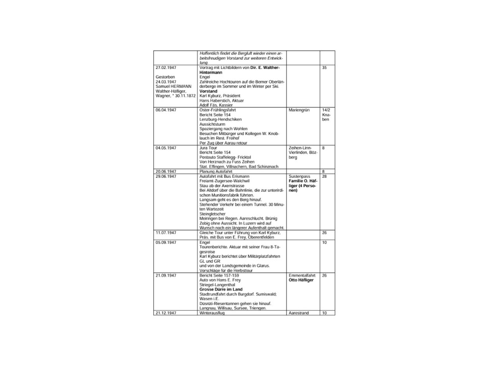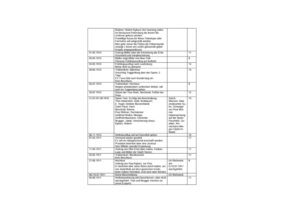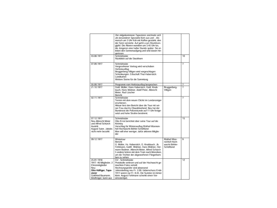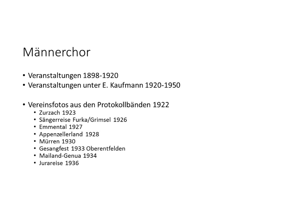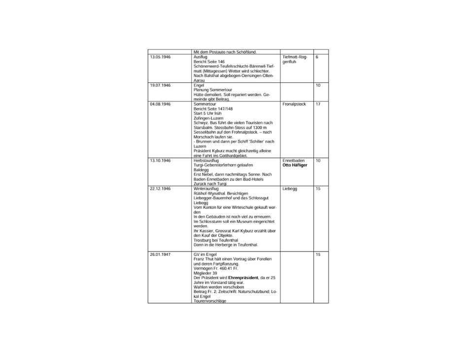 Präsident und Oberturner Hermann Dietiker; Vice-Präsident Fritz Fischer; Archivar Josef Stutz; Aktuar Jakob Meier; Kassier: Fritz Lindegger Vorturner wird gewählt: Ludwig Dietiker Keine Abendunterhaltung geplant.