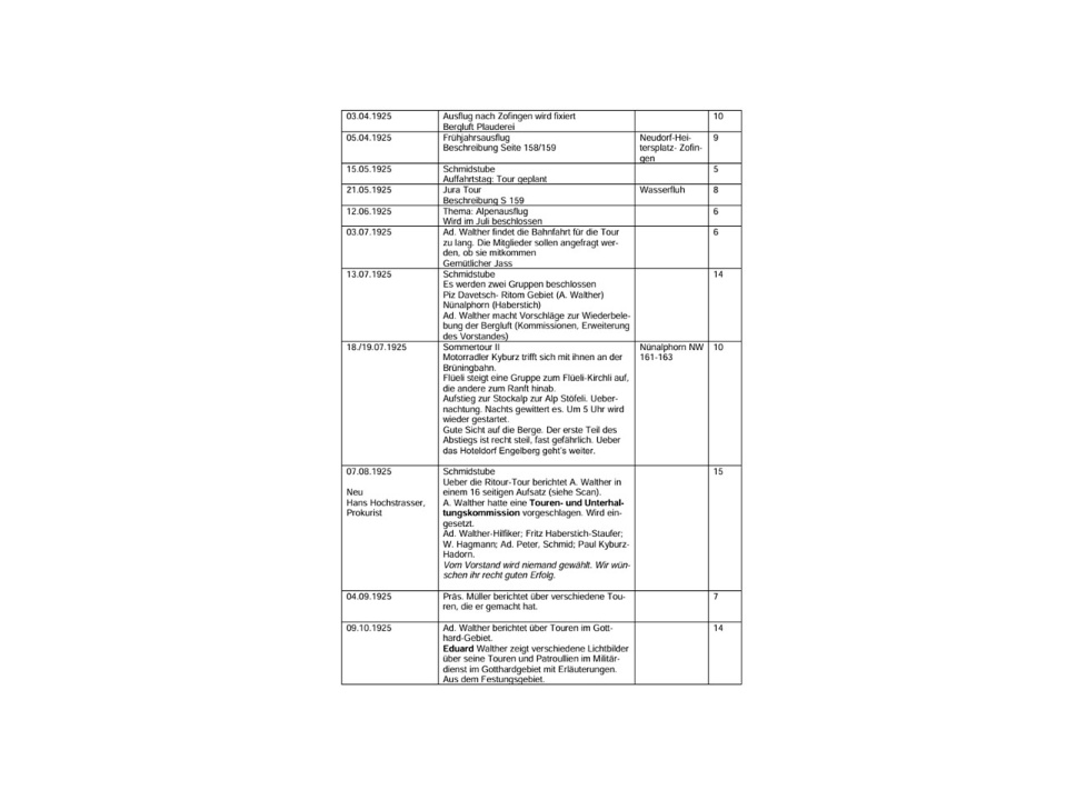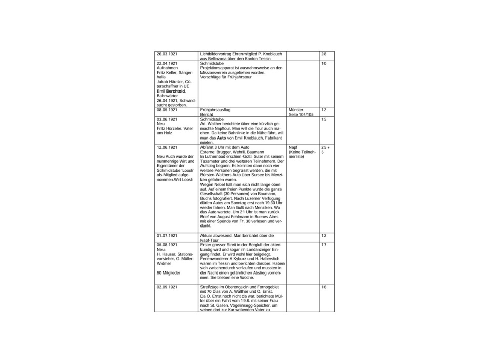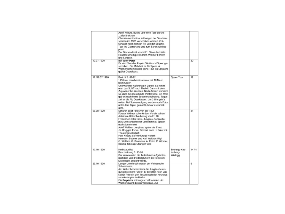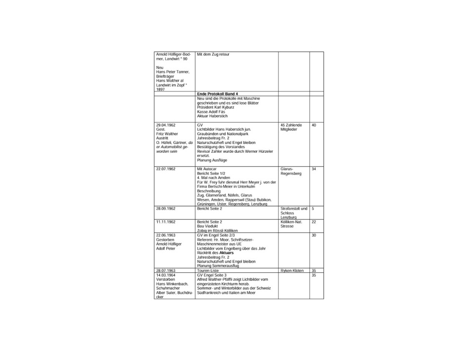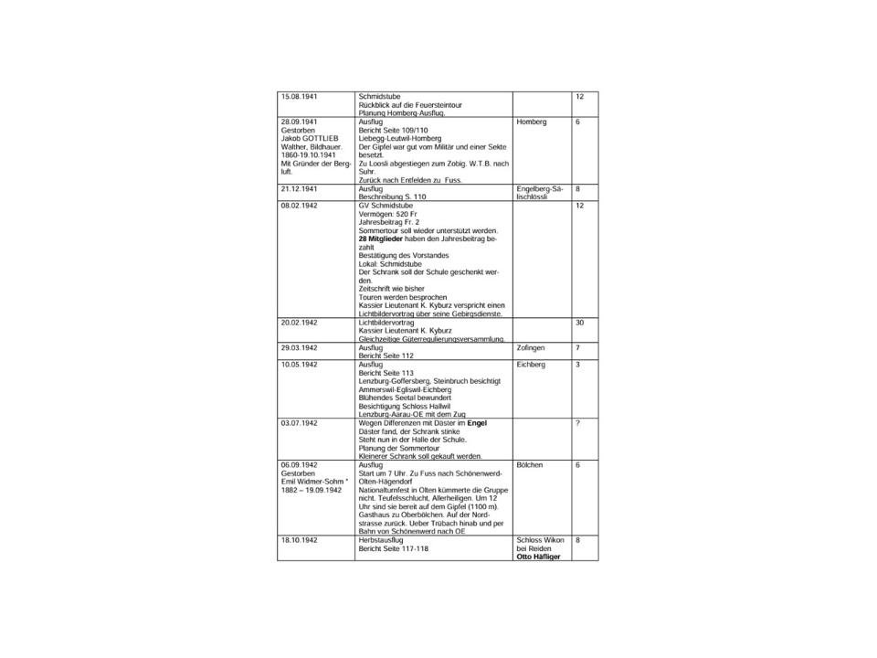 Präsident und Oberturner Hermann Dietiker; Vice-Präsident Fritz Fischer; Archivar Josef Stutz; Aktuar Jakob Meier; Kassier: Fritz Lindegger Vorturner wird gewählt: Ludwig Dietiker Keine Abendunterhaltung geplant.