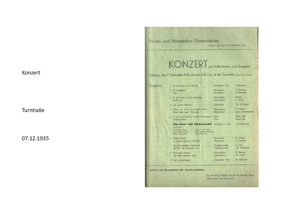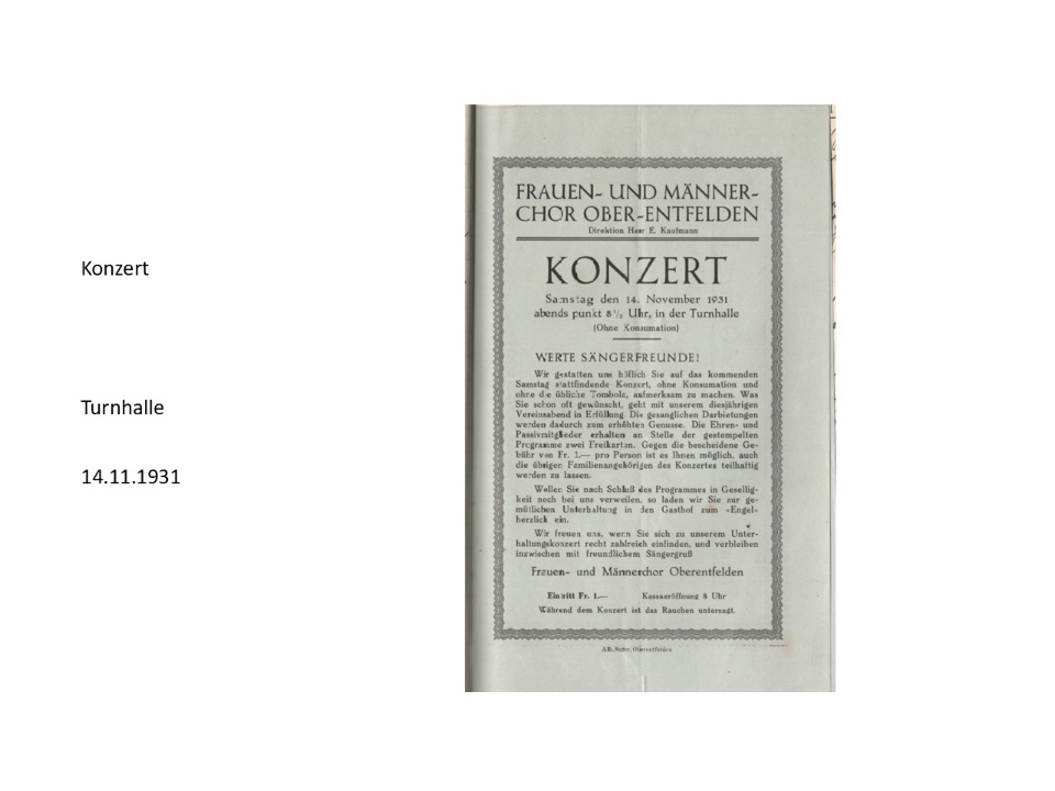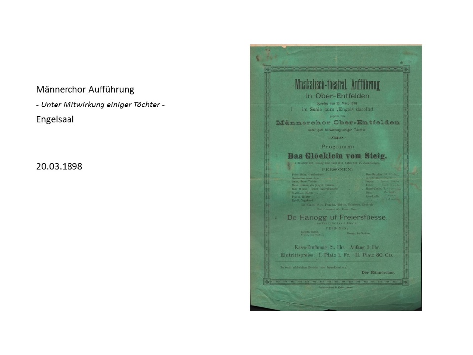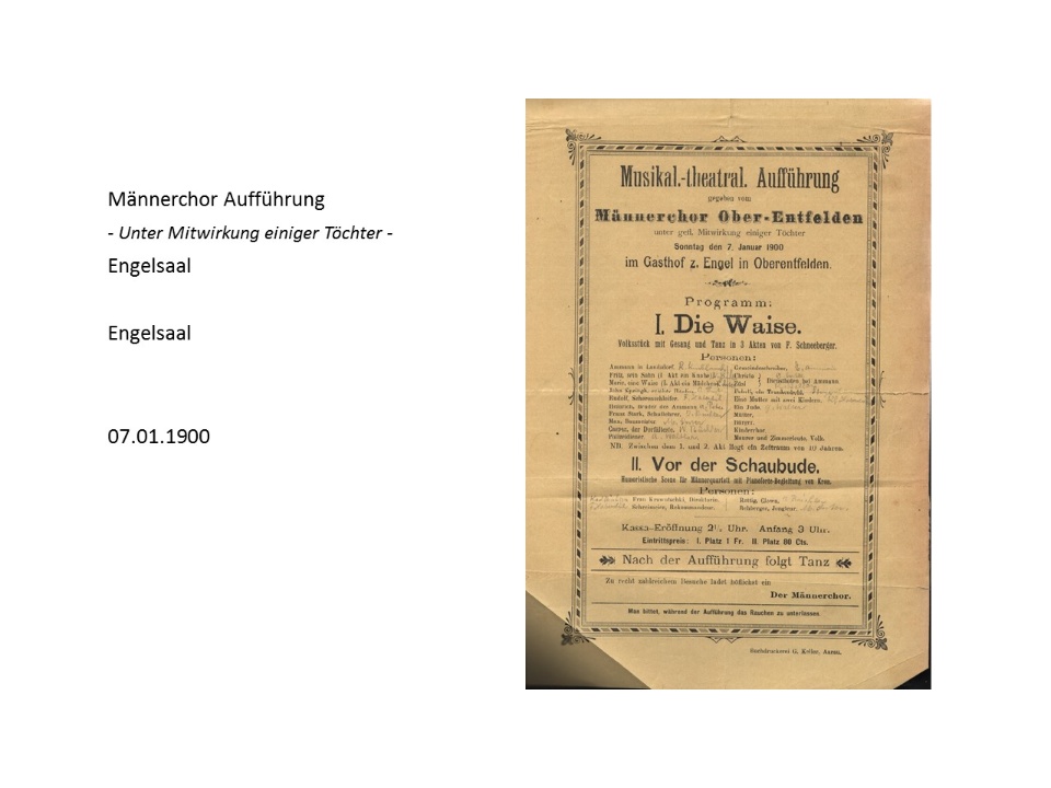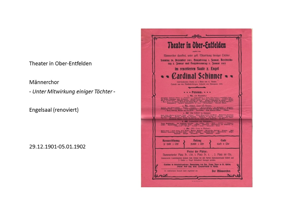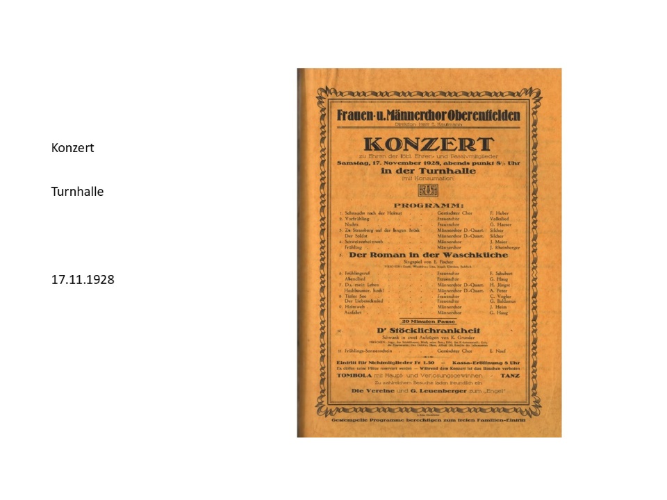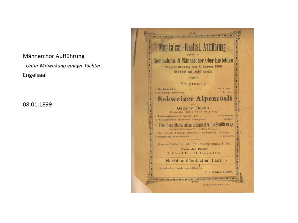 Am 11.1. wird das Stück – zusammen mit den Töchtern – nochmals gespielt, da die Kosten noch höher sind als die Einnahmen. Eintritt Fr. 1.00. Leider wird nicht detailliert über die Veranstaltungen berichtet.