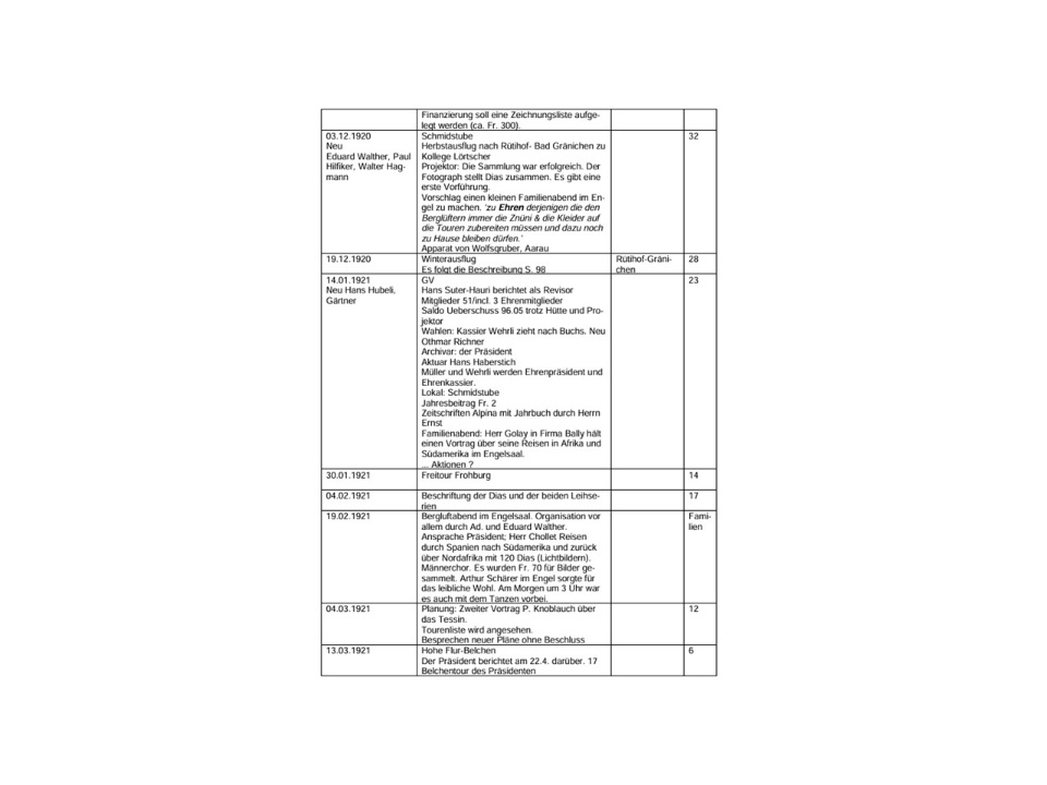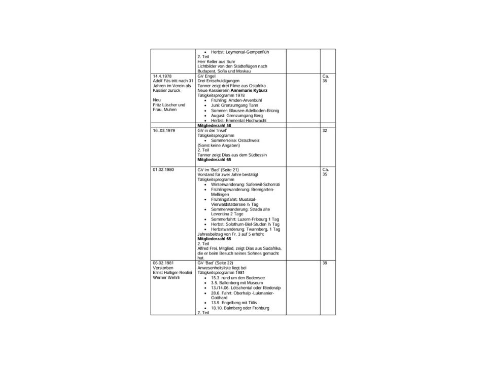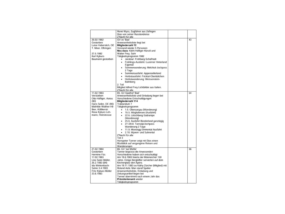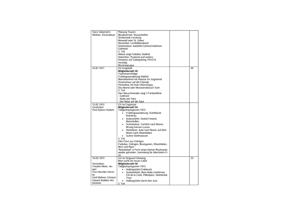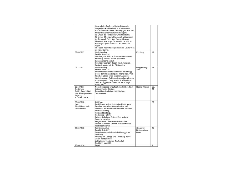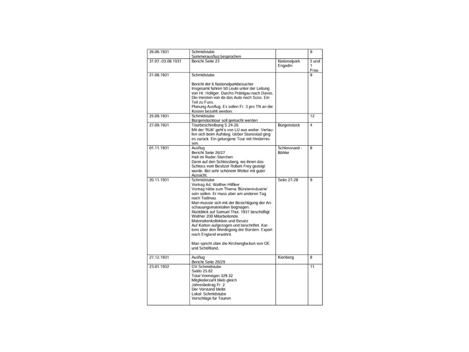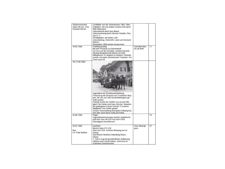 Am 11.1. wird das Stück – zusammen mit den Töchtern – nochmals gespielt, da die Kosten noch höher sind als die Einnahmen. Eintritt Fr. 1.00. Leider wird nicht detailliert über die Veranstaltungen berichtet.