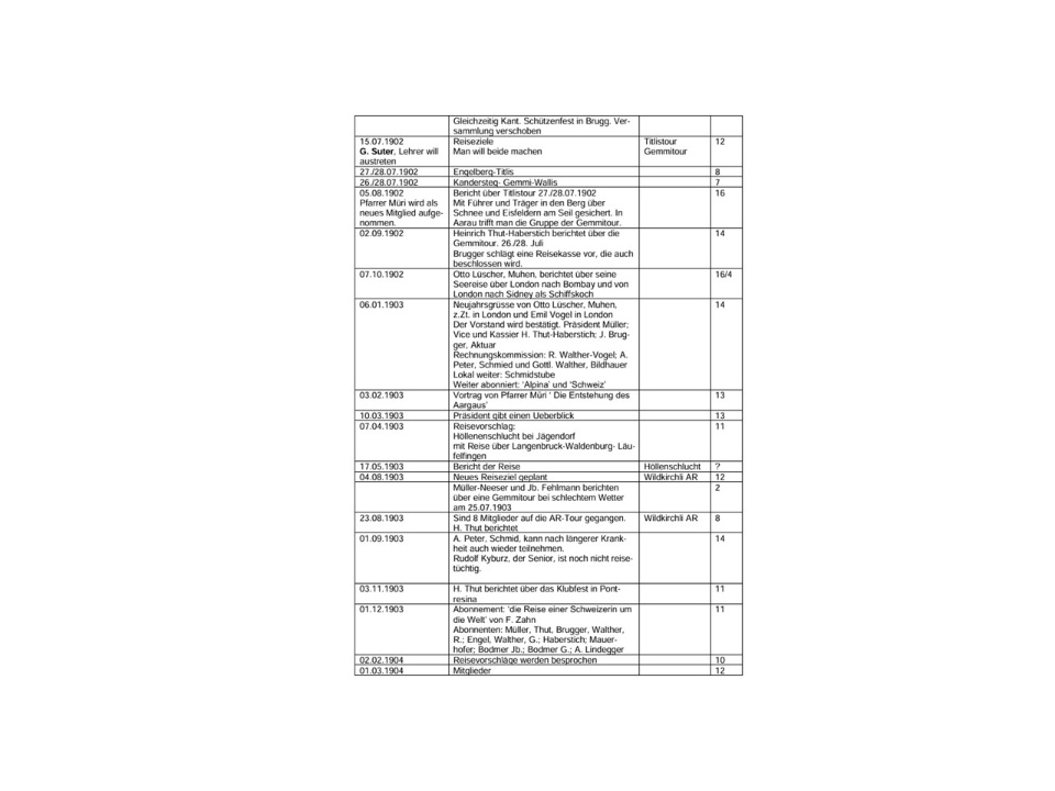 Wilhelm Suter tritt wegen gesundheitlicher Probleme aus, bleibt aber Passivmitglied. Sommerhalder, Karl tritt ohne Begründung aus. Die Sektion wird bei der Hilfskasse für verunglückte Turner angemeldet.