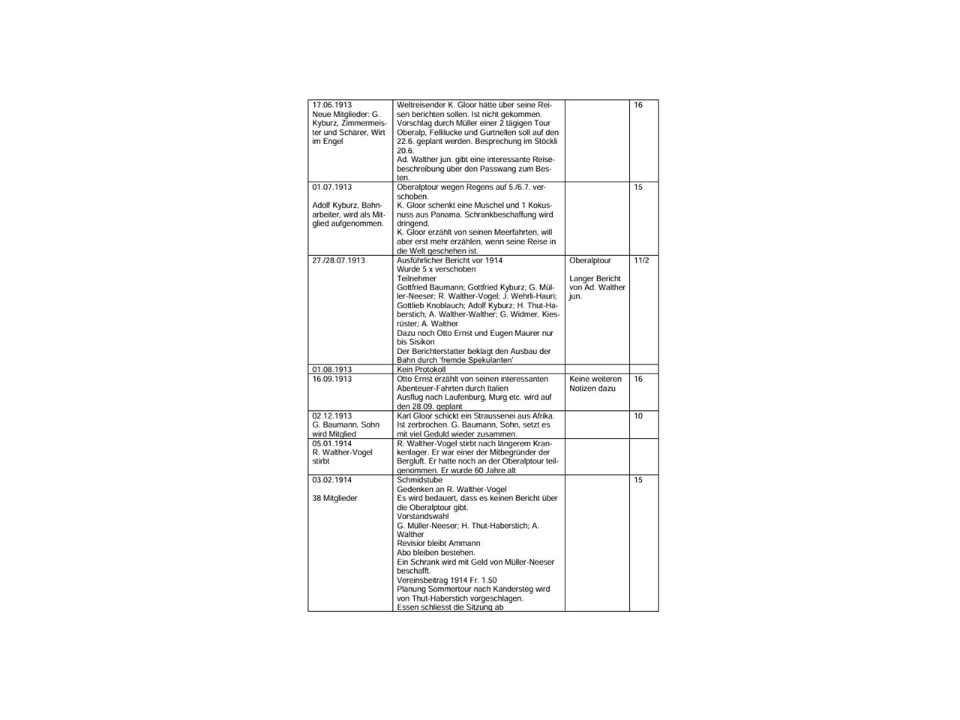 19.6.1913 Ausserordentliche Versammlung 26 Mitglieder im Vereinslokal